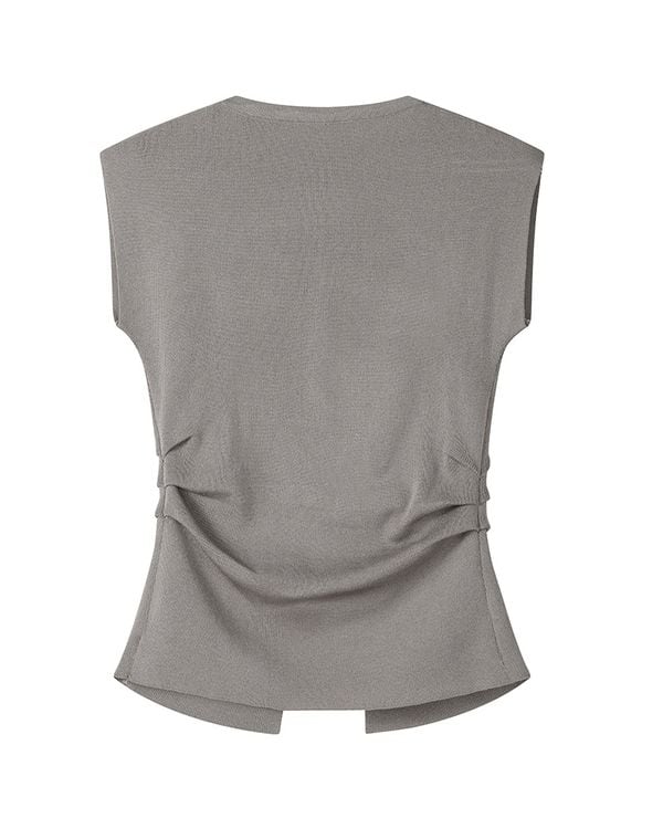 センタースリットがポイントの、ニット素材のノースリーブトップス。