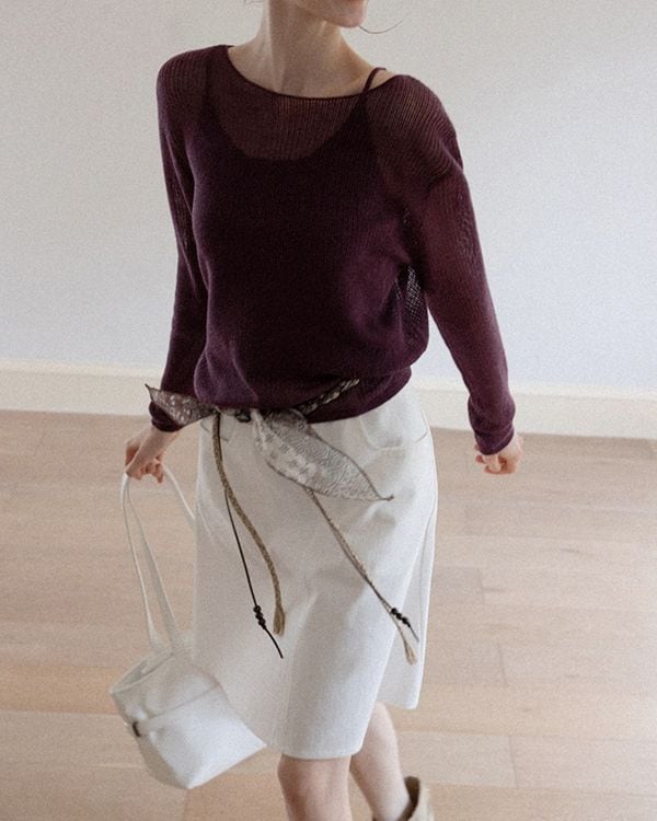 カジュアルなボトムスと合わせても、スカートと合わせても◎