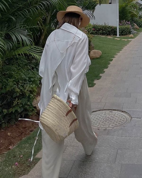 アシンメトリーな裾のデザインが、シンプルながらも洗練されたスタイリングを演出します。