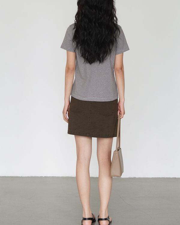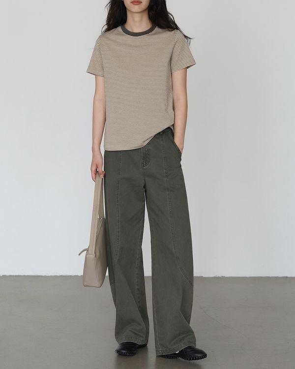 細めのボーダー柄が、さりげないおしゃれ感を演出します。