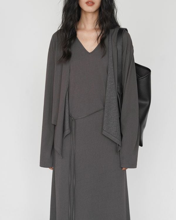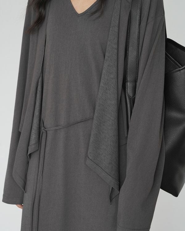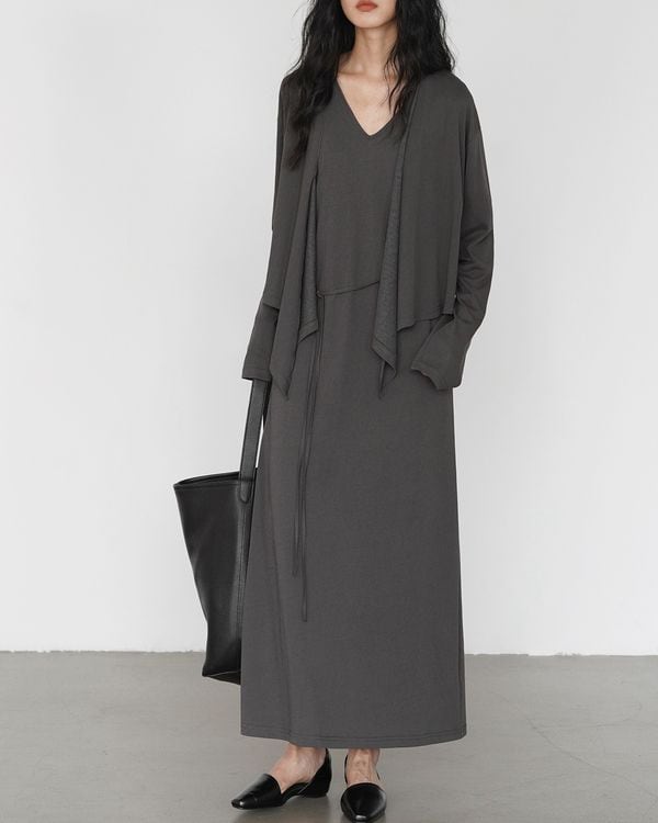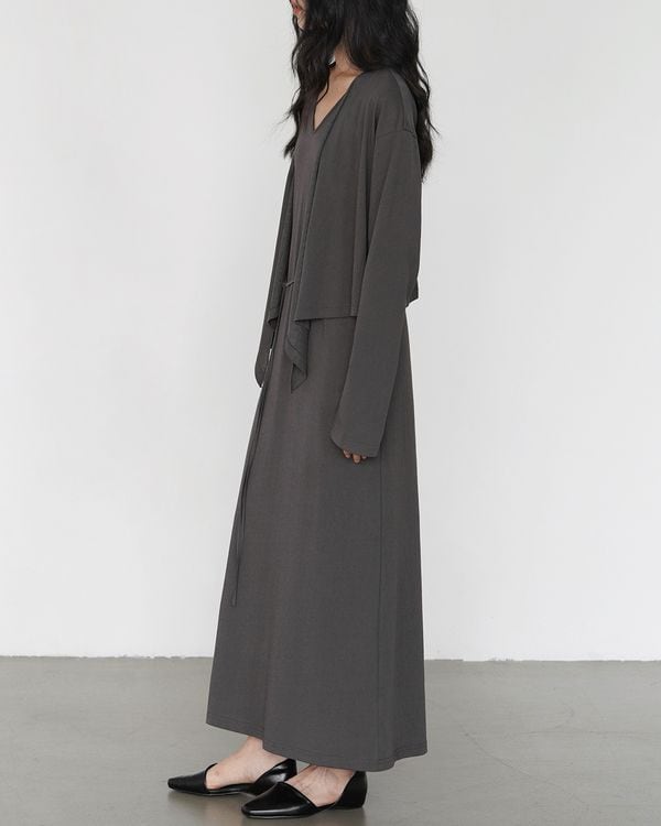 ロング丈のワンピースとカーディガンがセットになった、着回し力抜群のアイテムです。