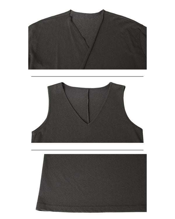 Vネックのワンピースは、一枚で着映えするデザイン。