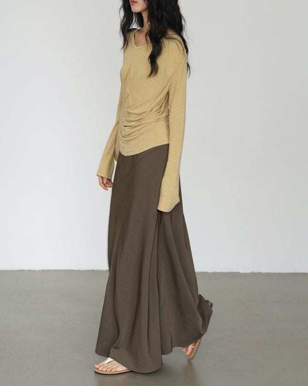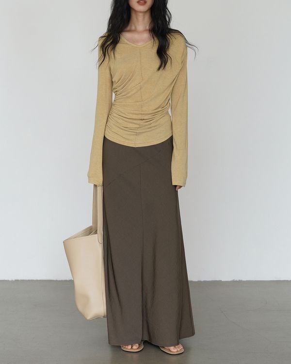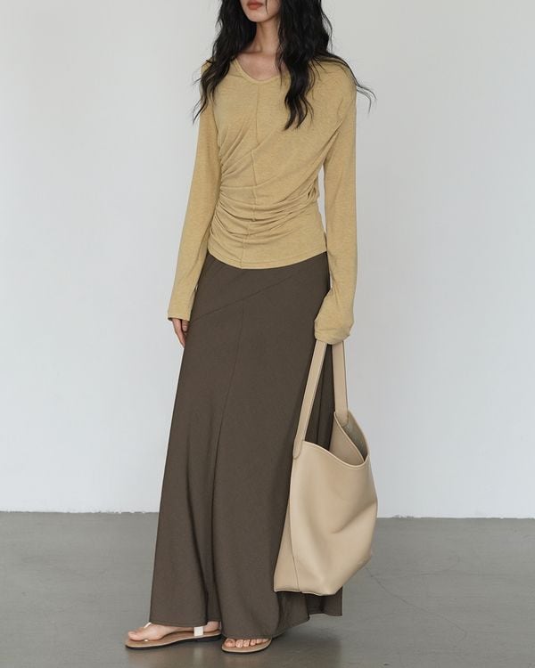 ・Side gathered v-neck long sleeve top ◇2color TH3557