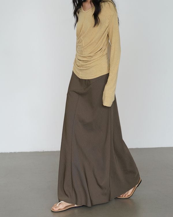 すっきりとしたシルエットと程よい丈感が魅力のロングスカート。