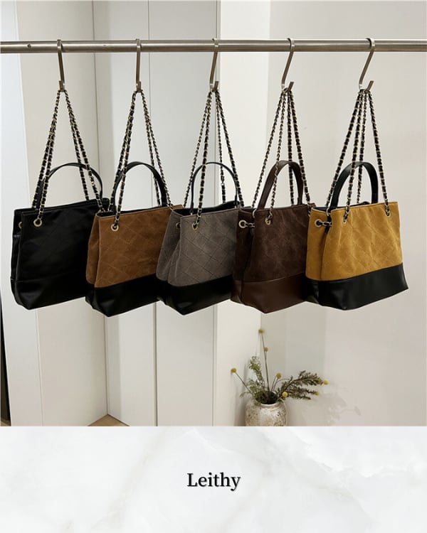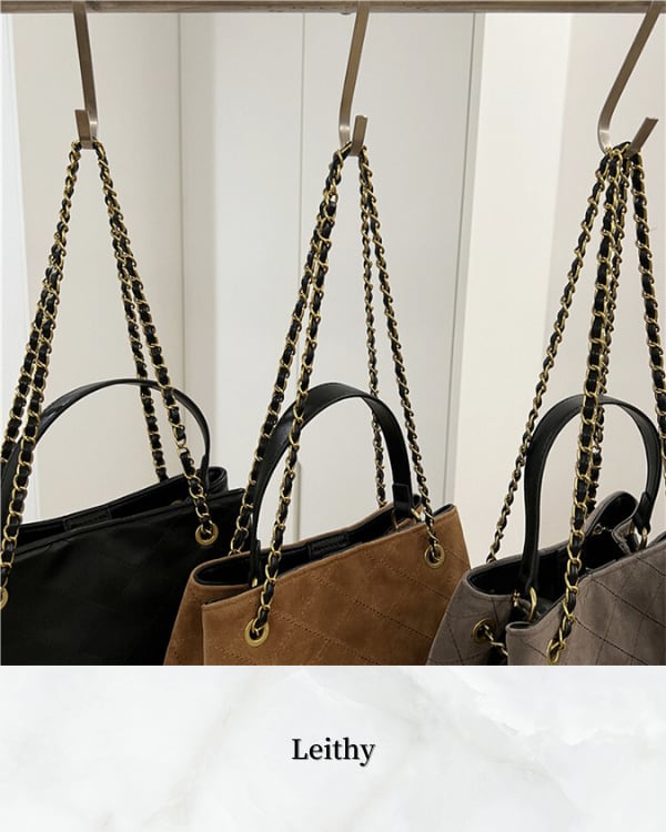 チェーンショルダーとキルティングデザインが洗練された印象を与えるバッグ。
