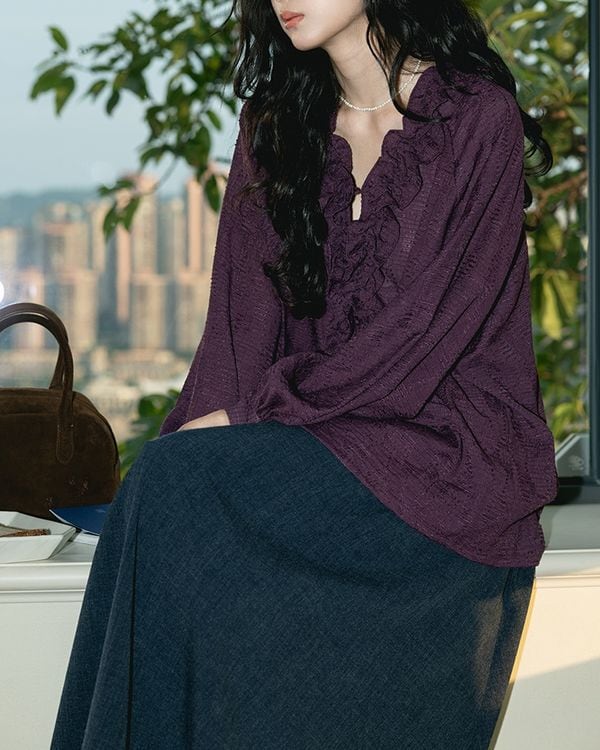 Vネックデザインがデコルテを美しく見せ、顔周りを明るく見せます。