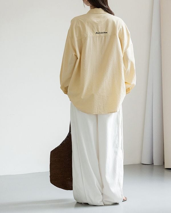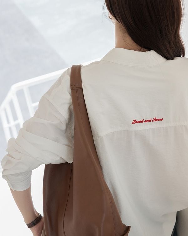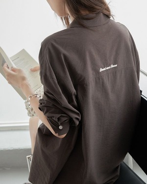 バックと胸元に刺繍が施された、オーバーサイズシルエットのロングスリーブシャツ。