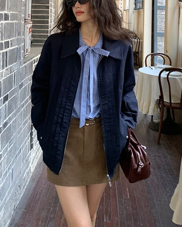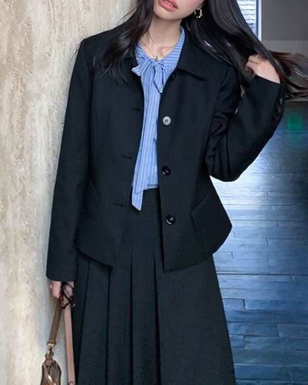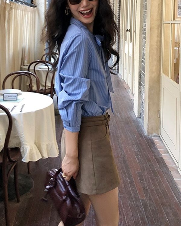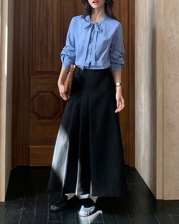 長袖で落ち着いた雰囲気がありながら、ボウタイのデザインが可愛らしさをプラス。