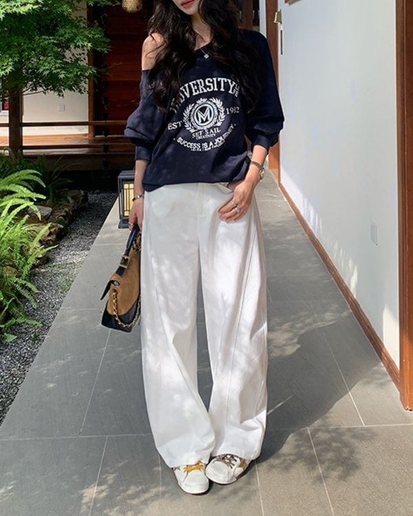 Off-the-shoulder logo sweatshirt ◇2color TH3573