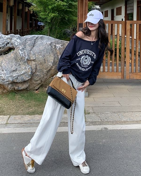 オフショルダーとビッグシルエットが魅力のスウェット。