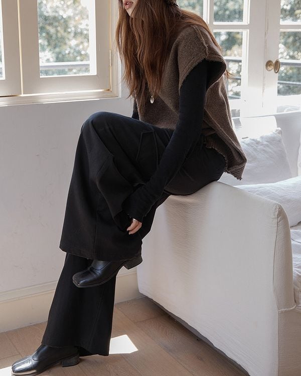 シンプルなデザインで着回し力抜群のニットベスト。