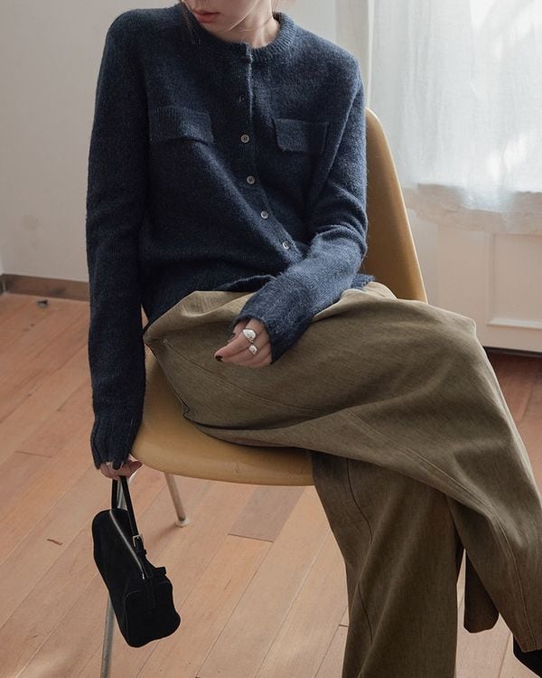 カジュアルにもきれいめにも着こなせるニットカーディガン。