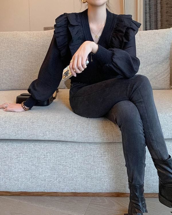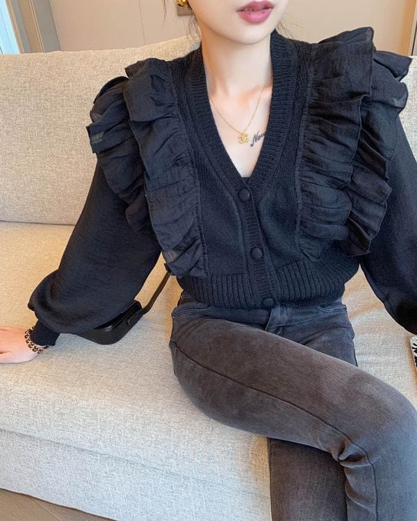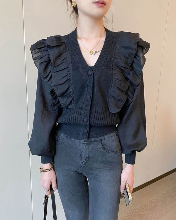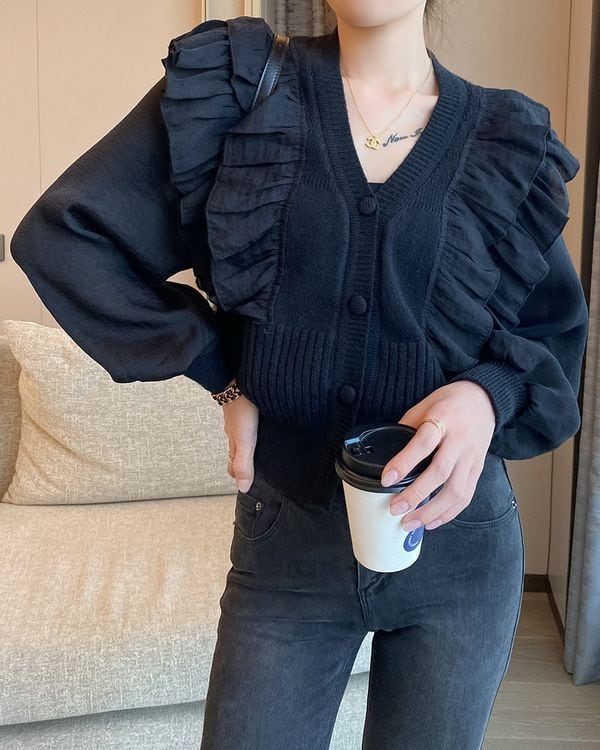 Frill shoulder knit cardigan TH2974