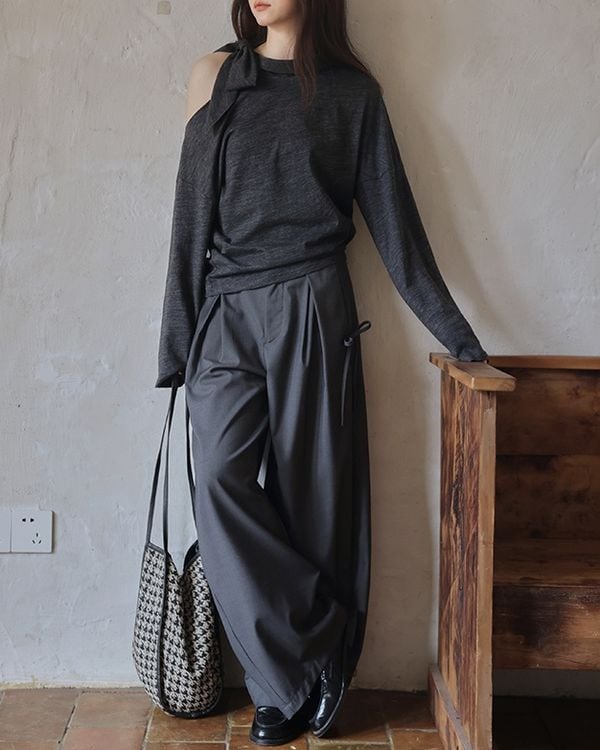 シンプルなデザインながらも、アシンメトリーなシルエットがこなれ感を演出します。
