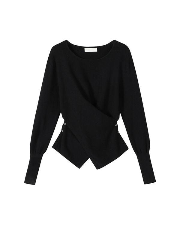 着るだけでおしゃれ上級者に見えるアシンメトリーニット。