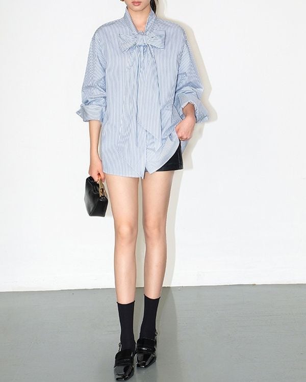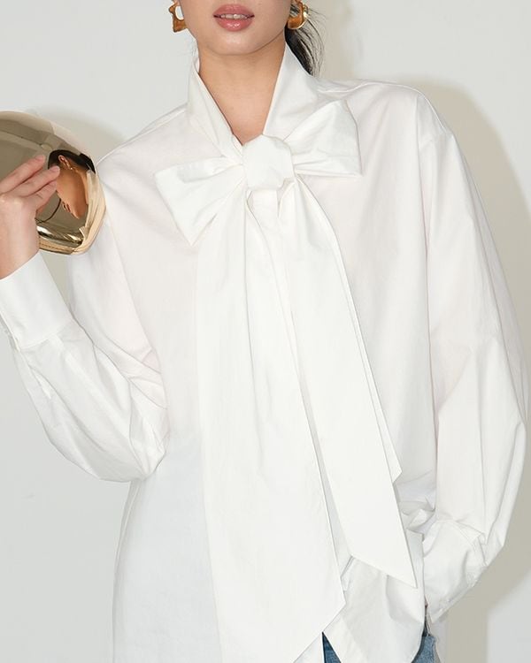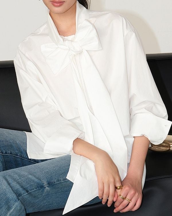 シンプルな着こなしでも、ボウタイがアクセントになり、おしゃれ度がアップします。