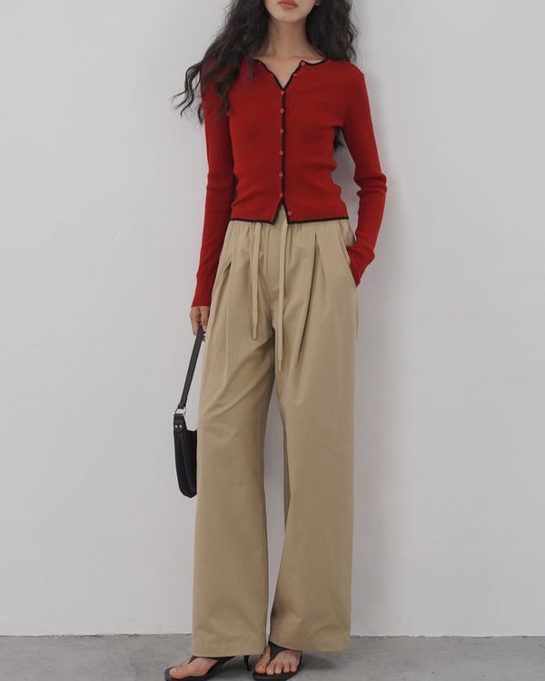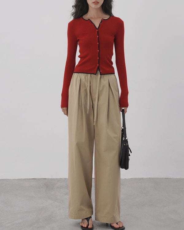 コーディネートの主役になる、コントラストカラーが目を引く長袖カーディガン。