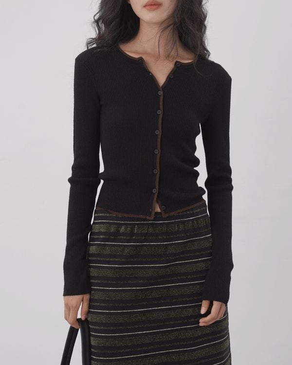 Contrast color ribbed knit cardigan ◇2color TH3618