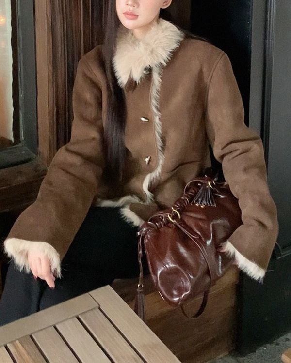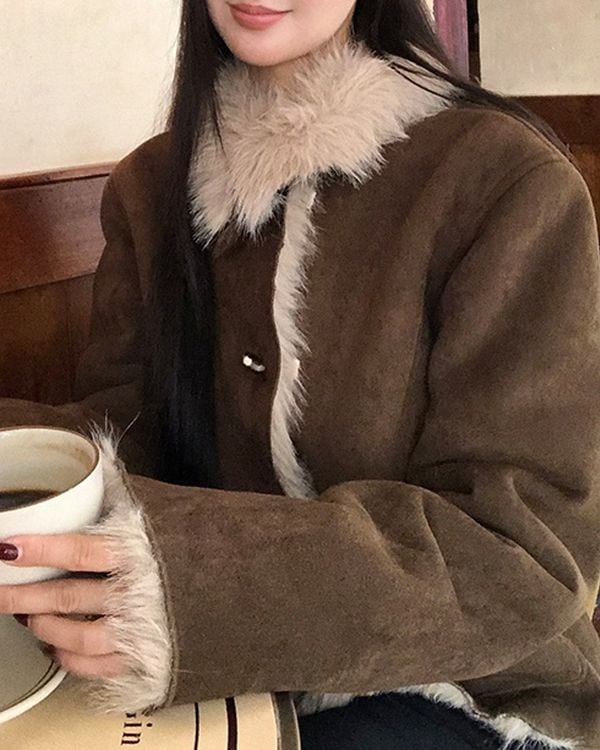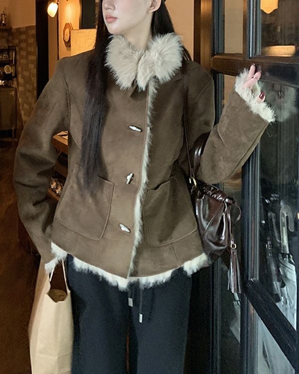 Fur collar suede jacket TH3633