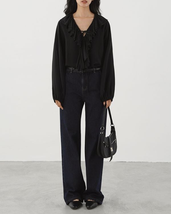 胸元のフリルが華やかな印象をプラスしてくれるブラウス。