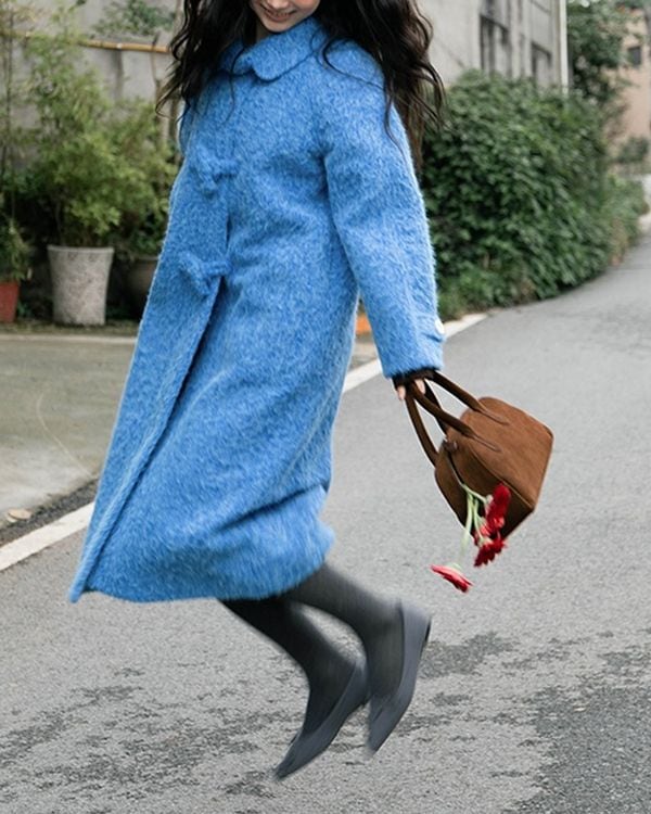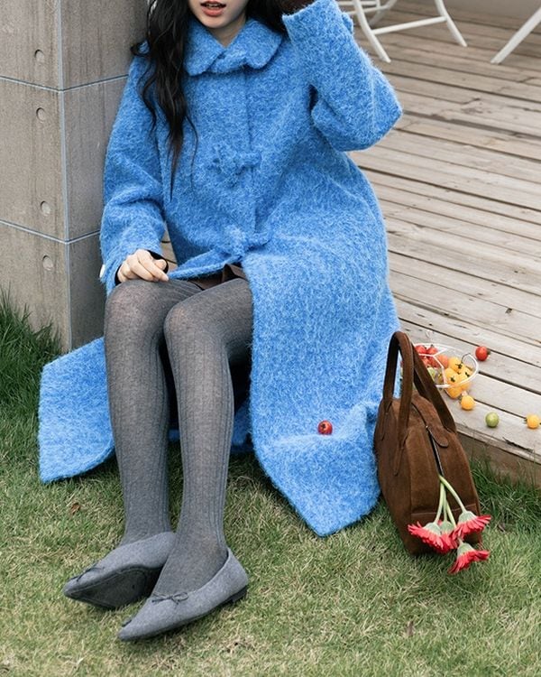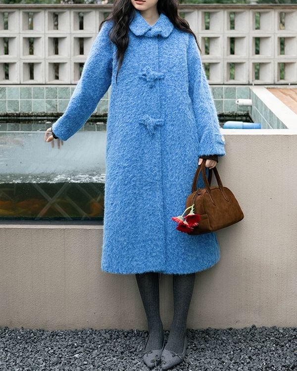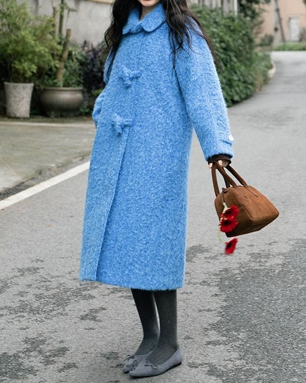 Blue mohair long coat ◇2type TH3657
