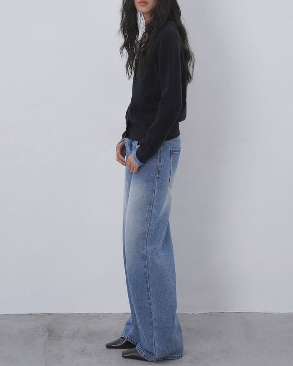 Vネックのデザインが顔周りをすっきりと見せてくれます。