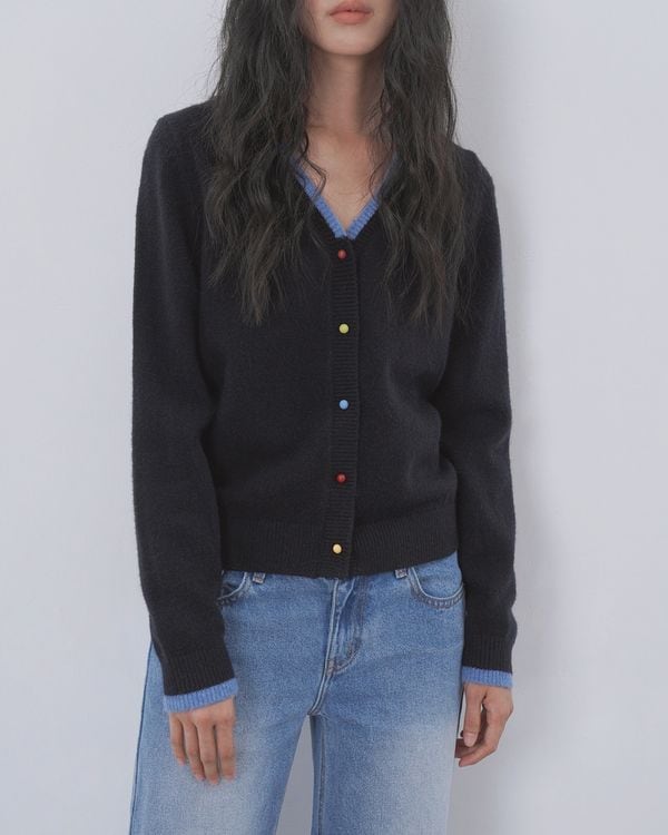 シンプルなデザインの中に遊び心を加えたニットカーディガン。