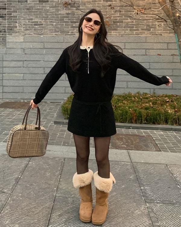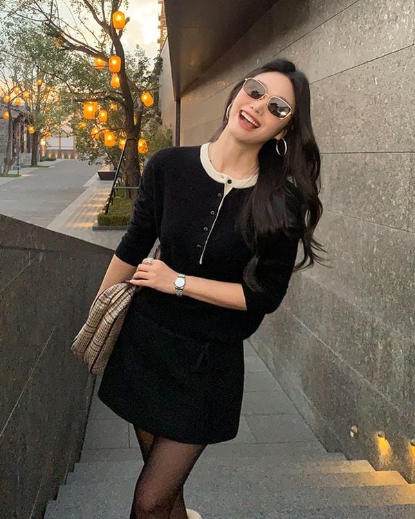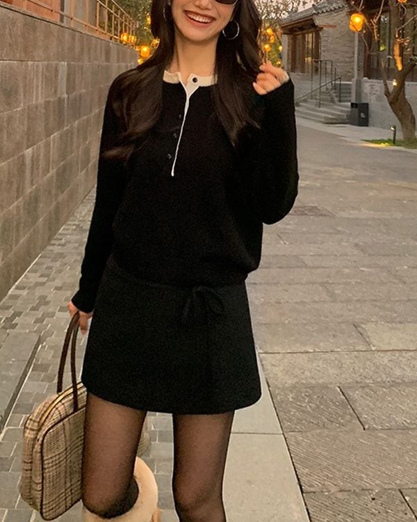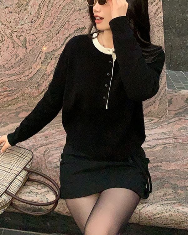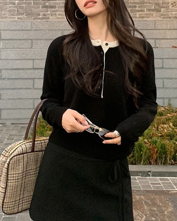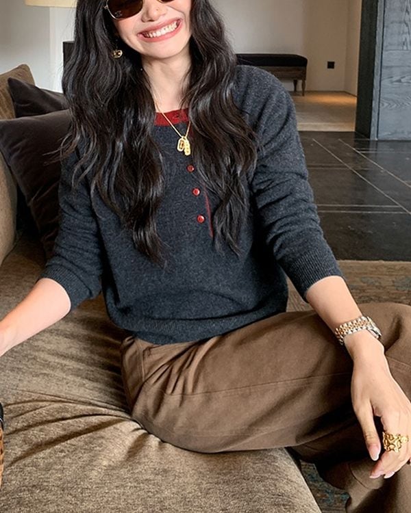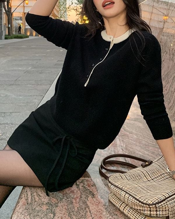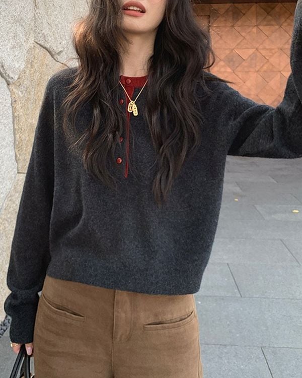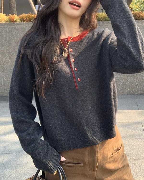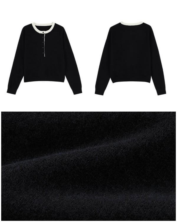 コントラストカラーが目を惹く、クルーネックニットプルオーバー。