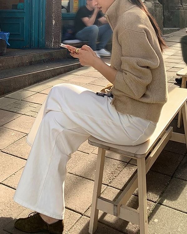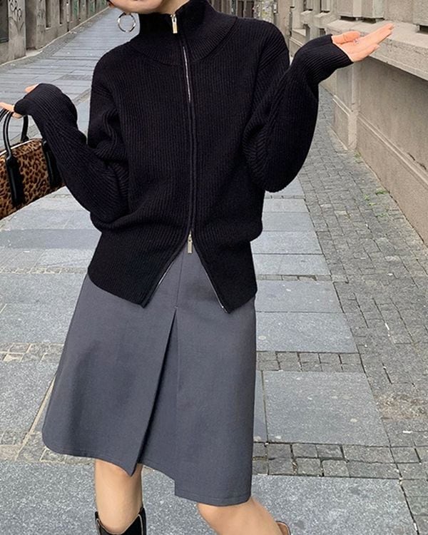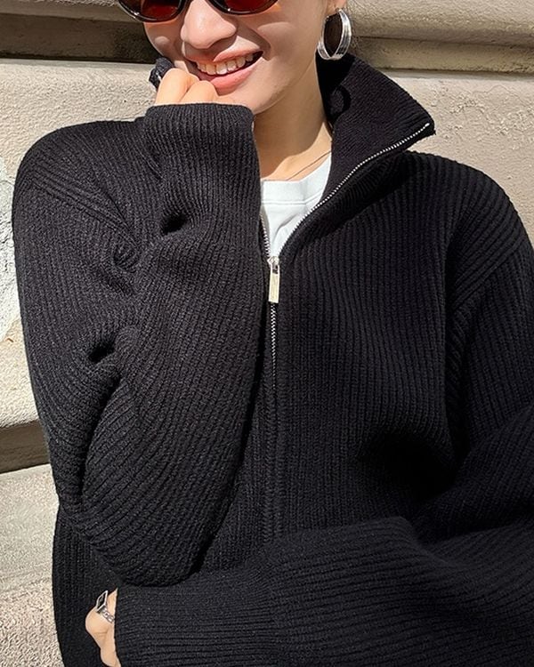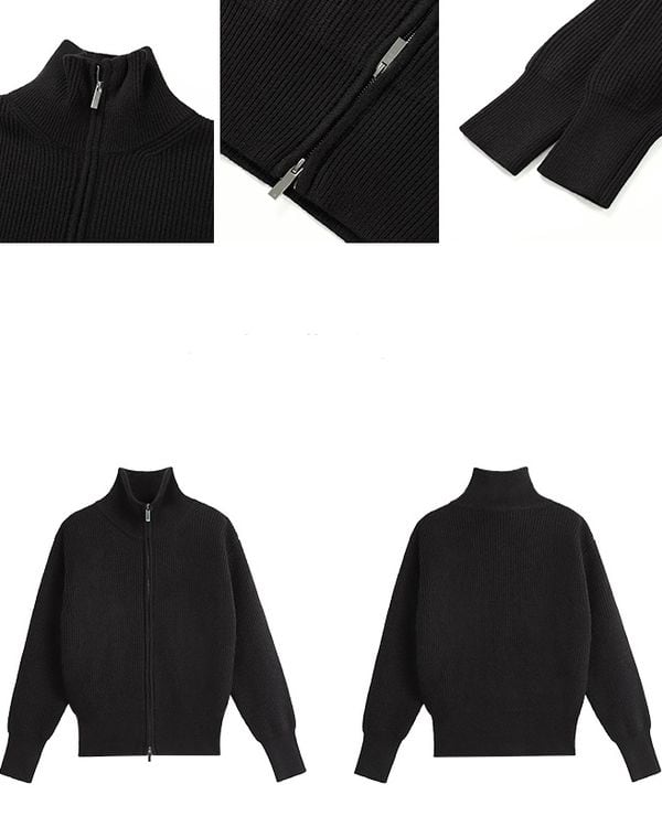 Double zip stand collar rib knit ◇3color TH3688