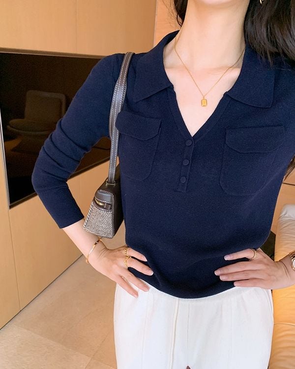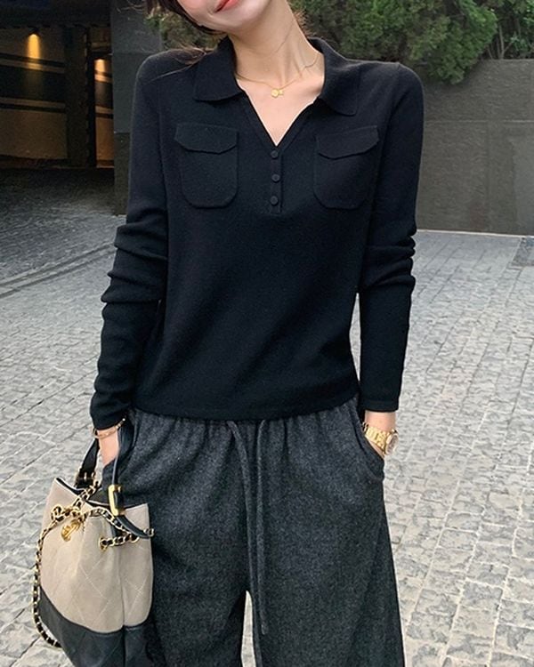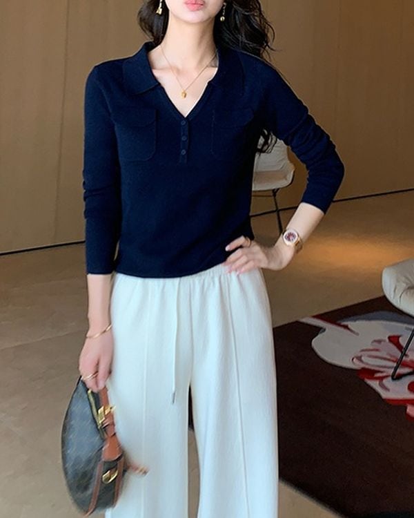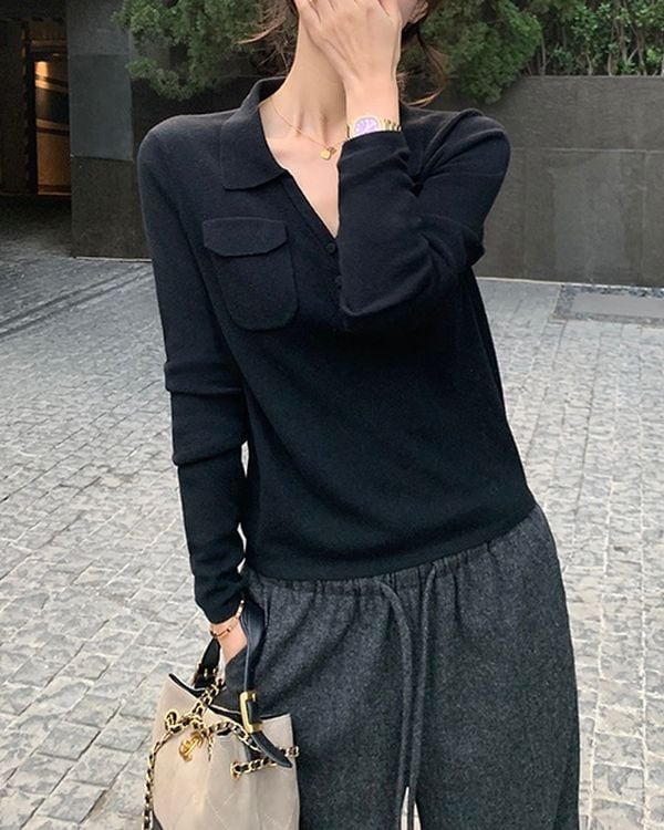 カジュアルにもキレイめにも着こなせるニットトップス。