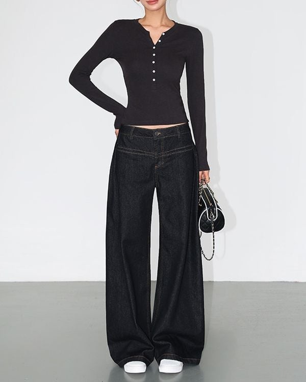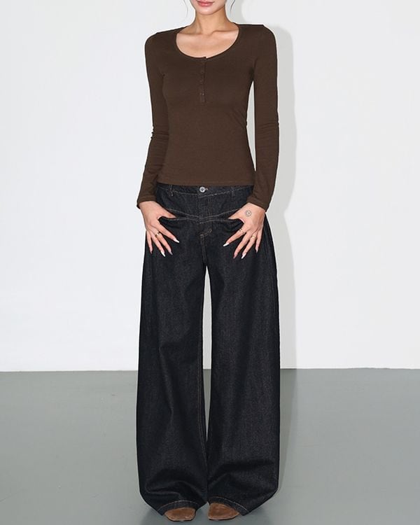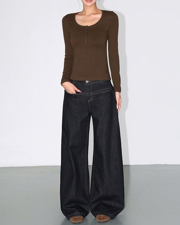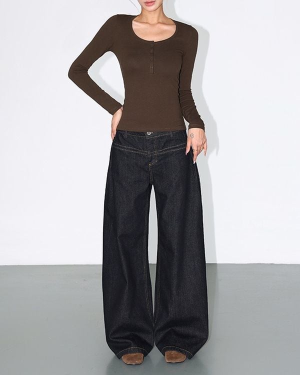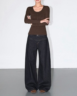 Low rise wide denim pants TH3698