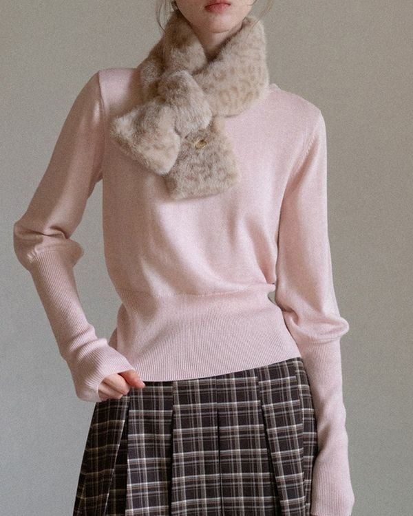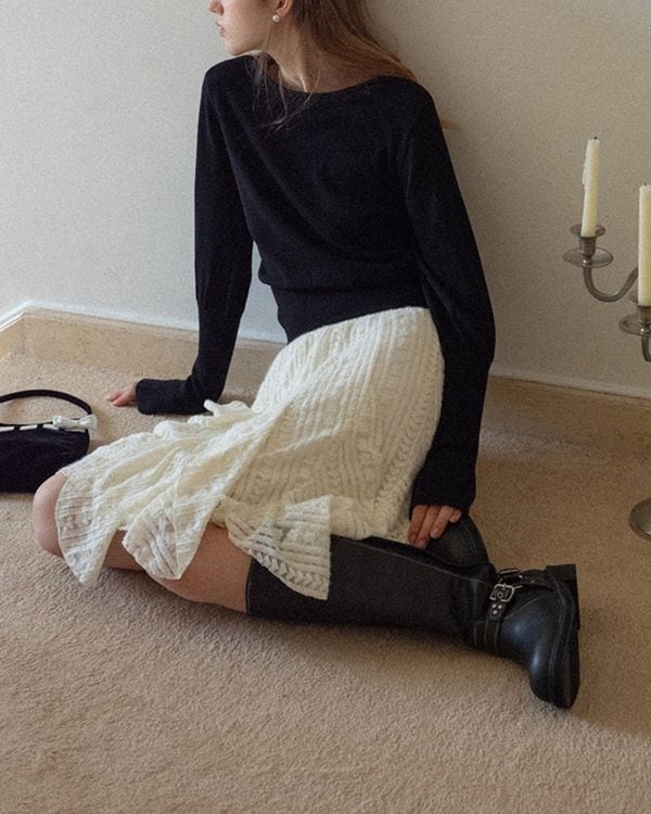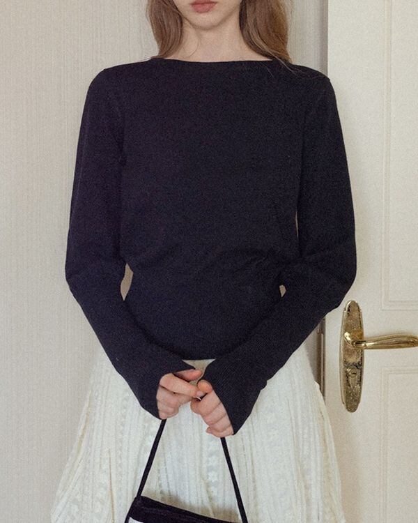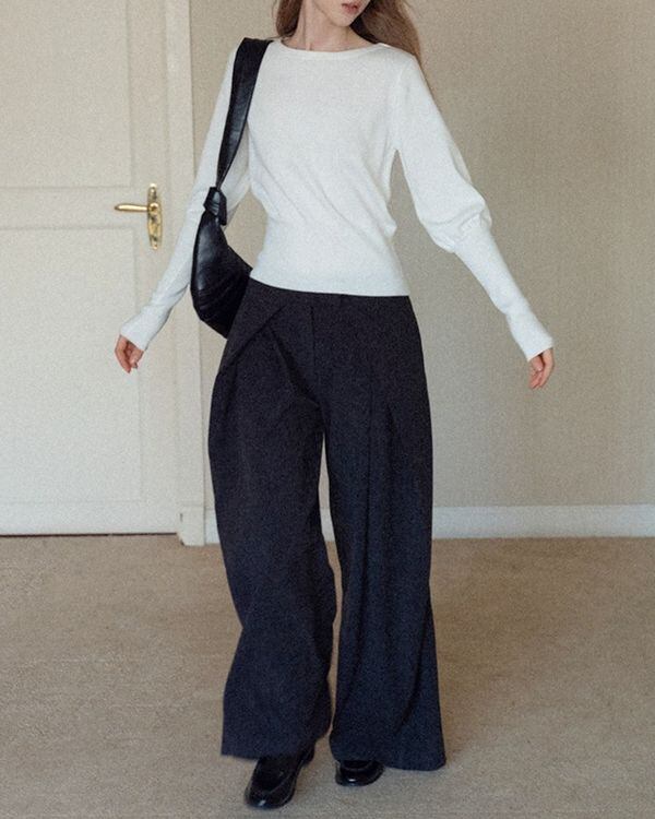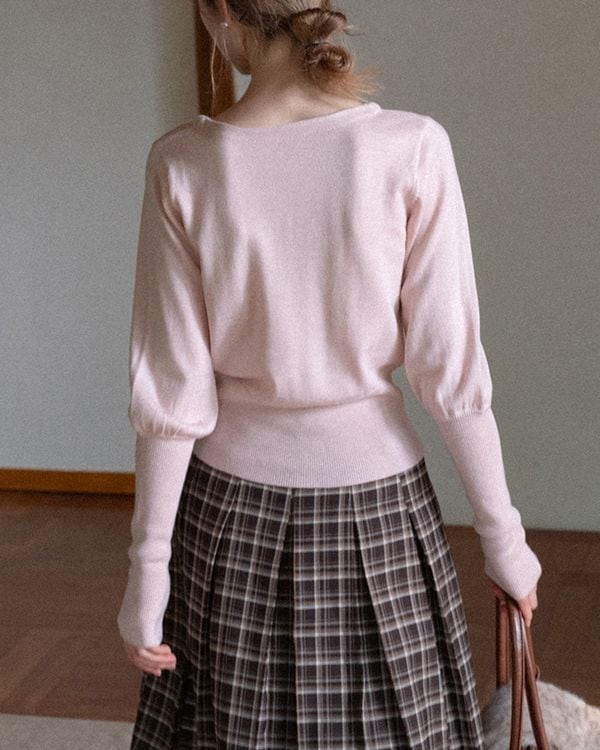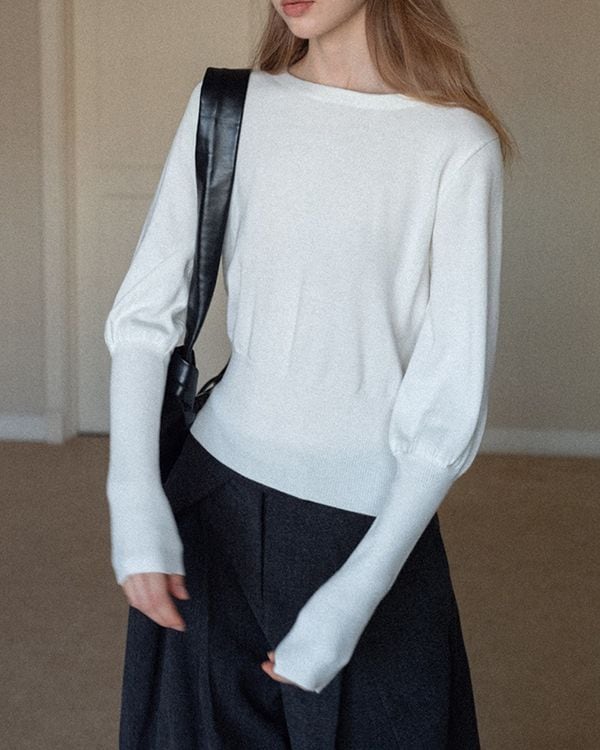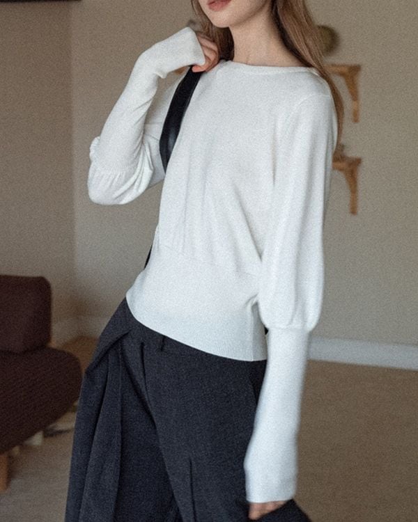 バルーンスリーブが女性らしさを演出するニット。