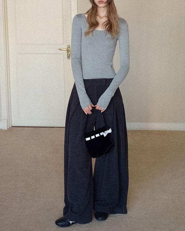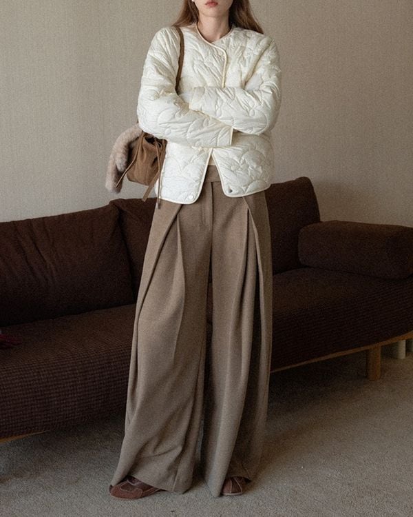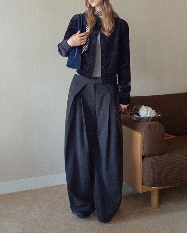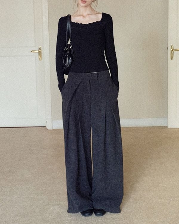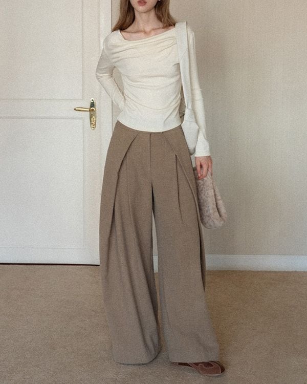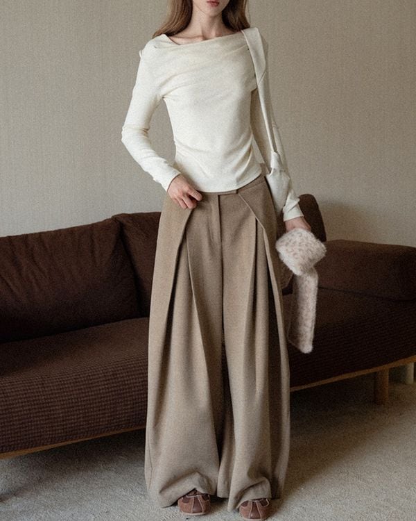 リラックス感と上品さを兼ね備えたワイドパンツ。