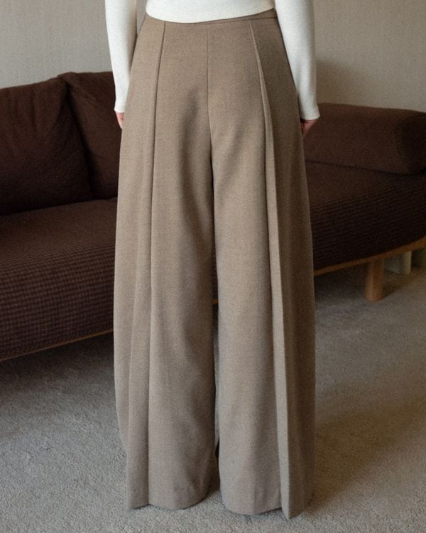 タックが入りで腰回りにゆとりを持たせつつ、美しいドレープを生み出します。
