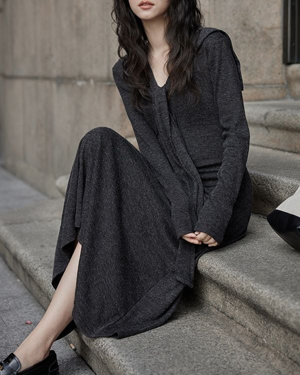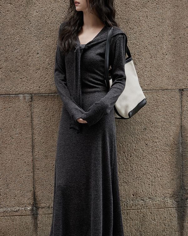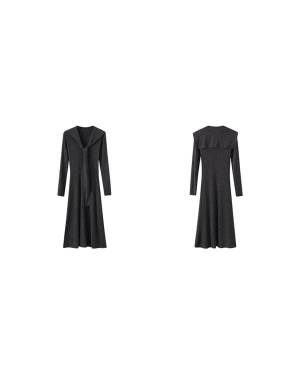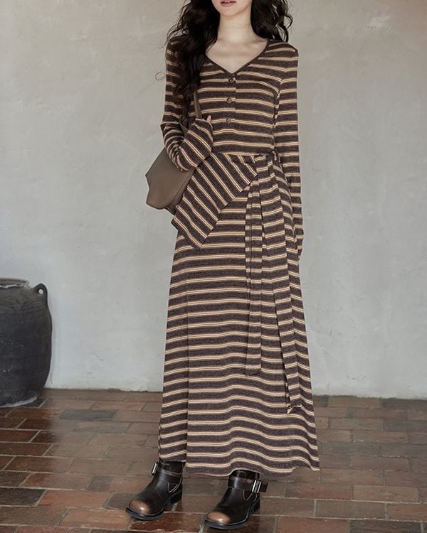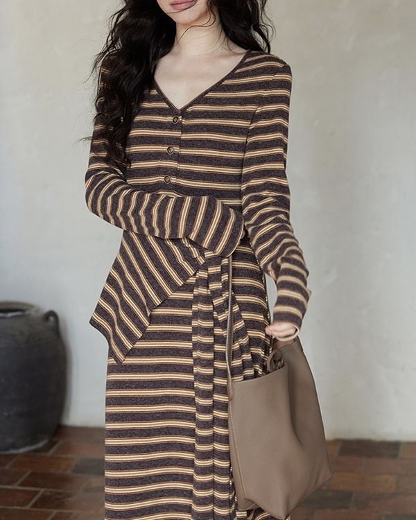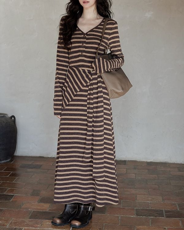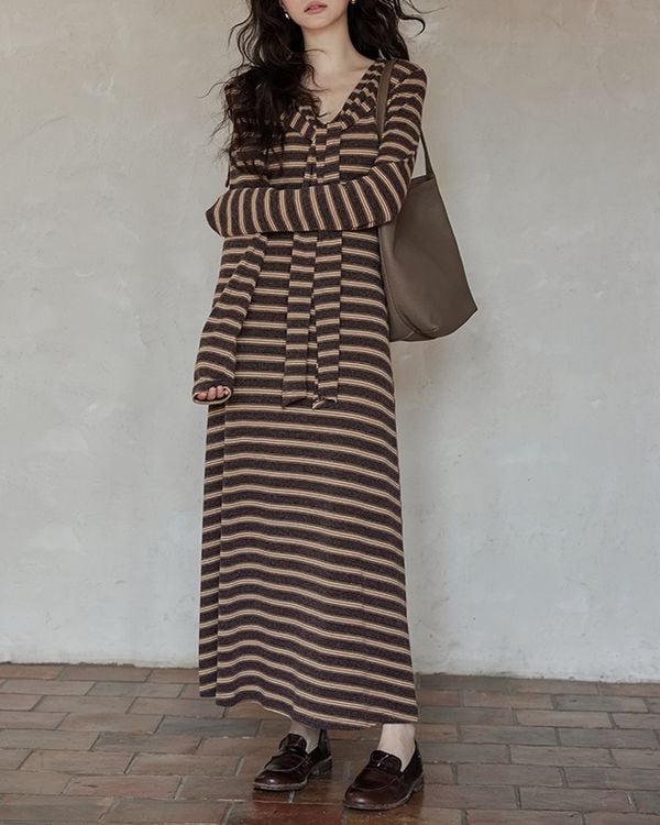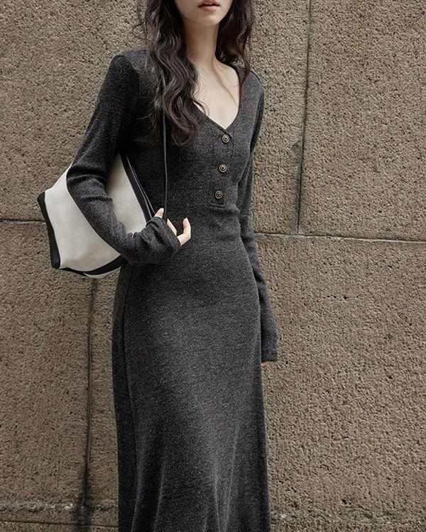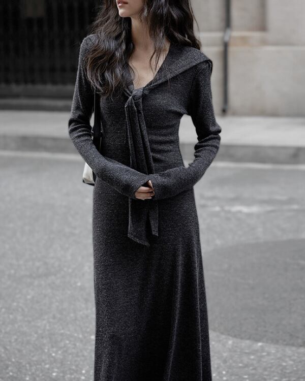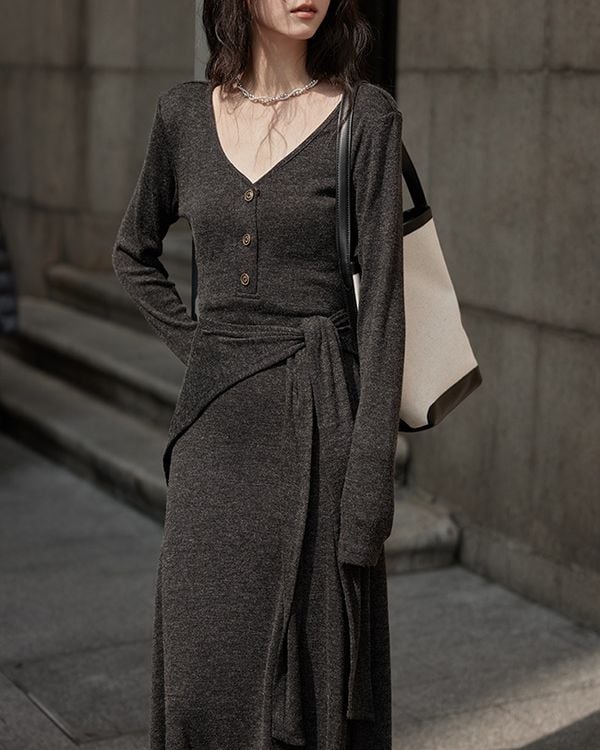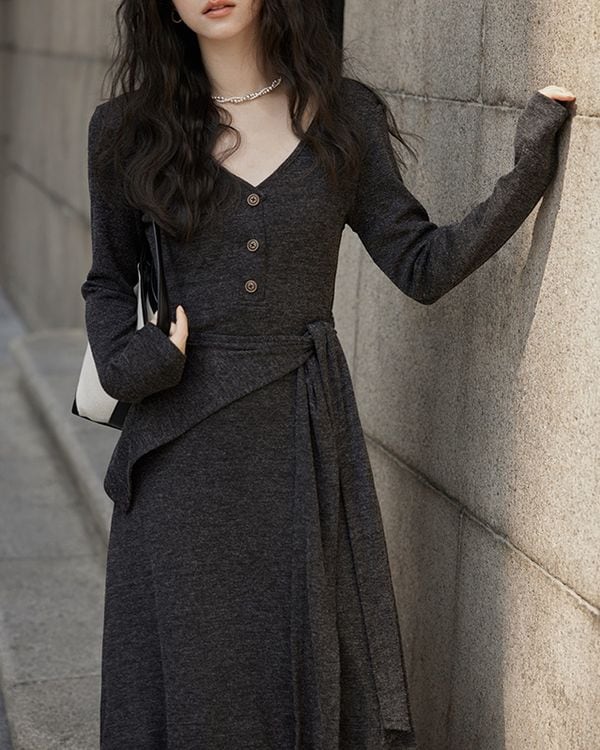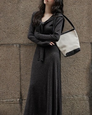 V-neck slim a-line dress ◇2color TH3712
