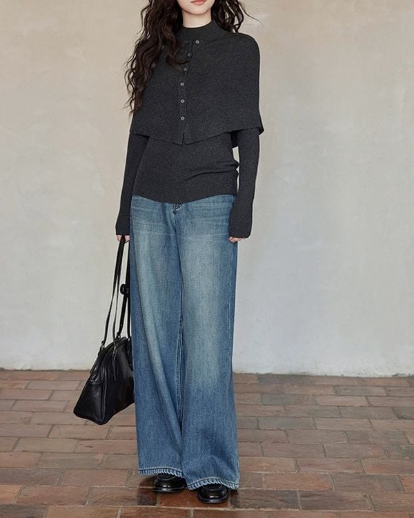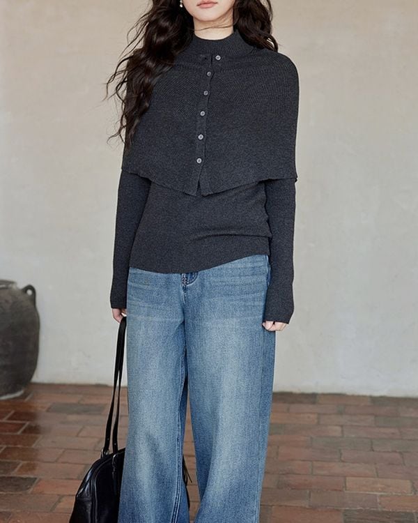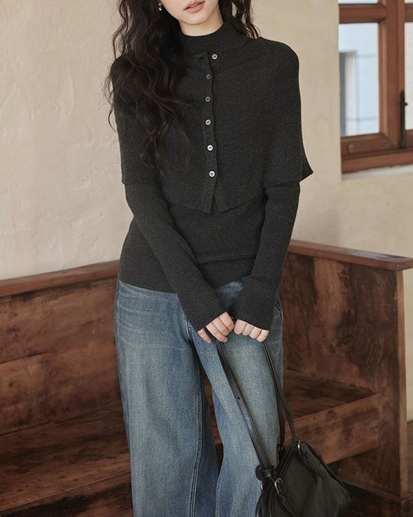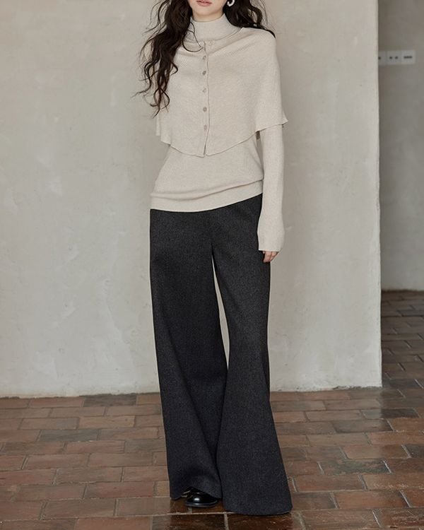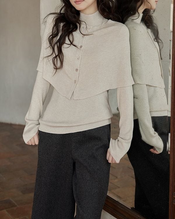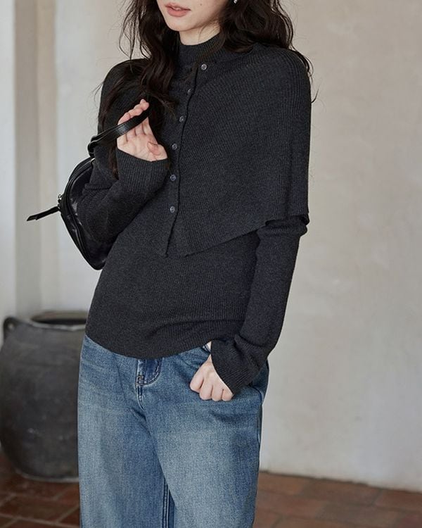[Set] High-neck rib knit × knit cape ◇2color TH3717
