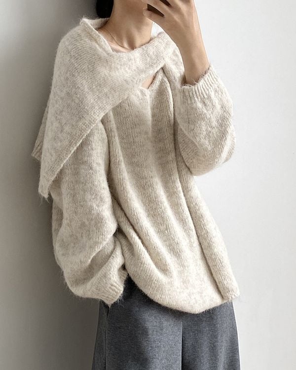 [Set] V-neck loose knit × shawl ◇4color TH3726