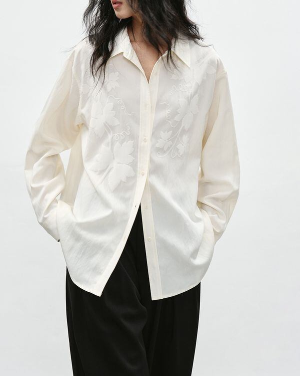 カジュアルながらも上品な印象のシャツ。