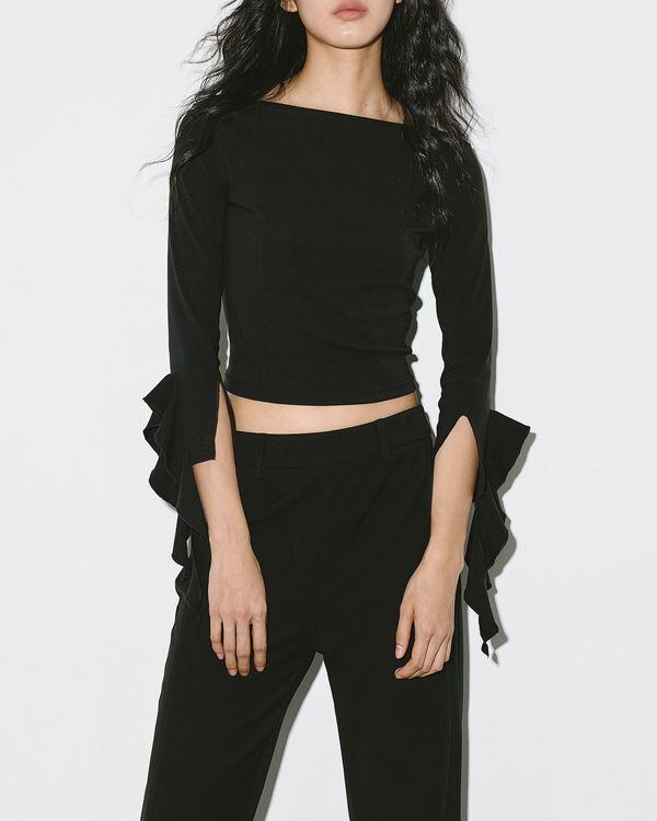 Ruffle Sleeve cropped cutsew ◇2color TH3743