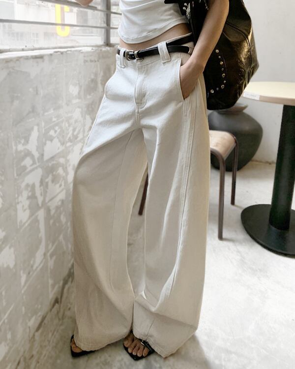 White wide-leg denim pants TH3749