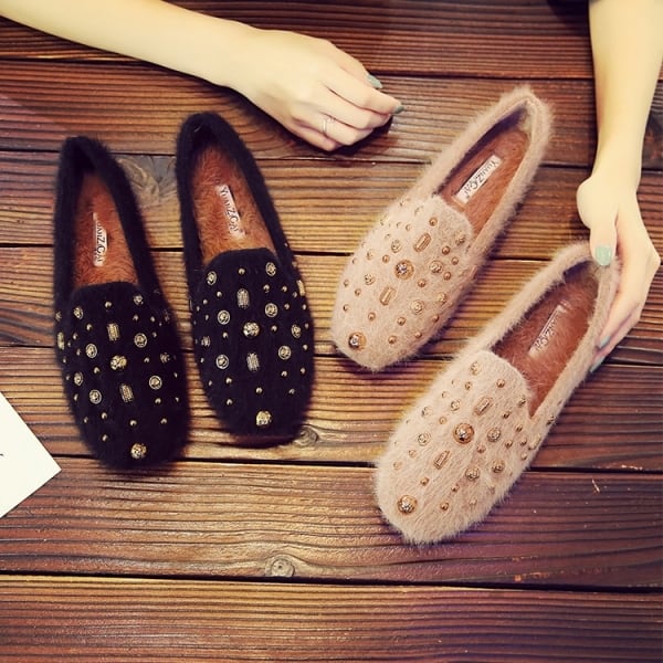 ゴールドスタッズが散りばめられたふわふわフラットシューズ