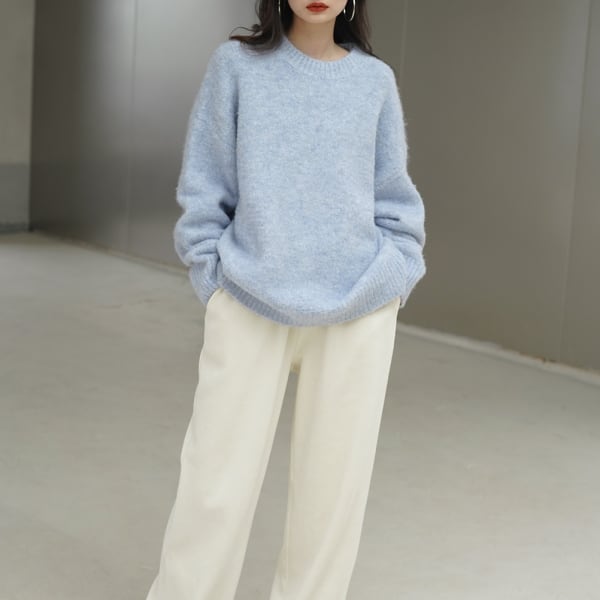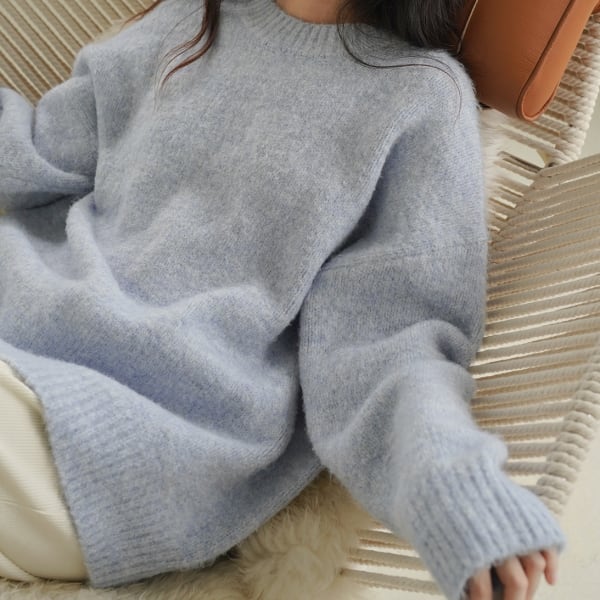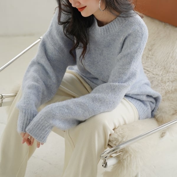 シンプルながら一癖加わった柔らかく優しい印象のカラーニット。
