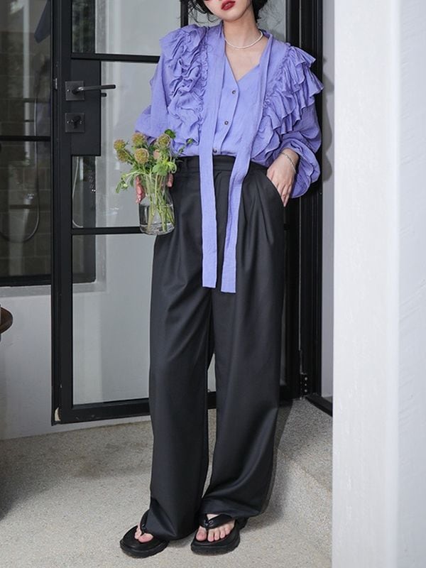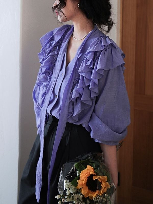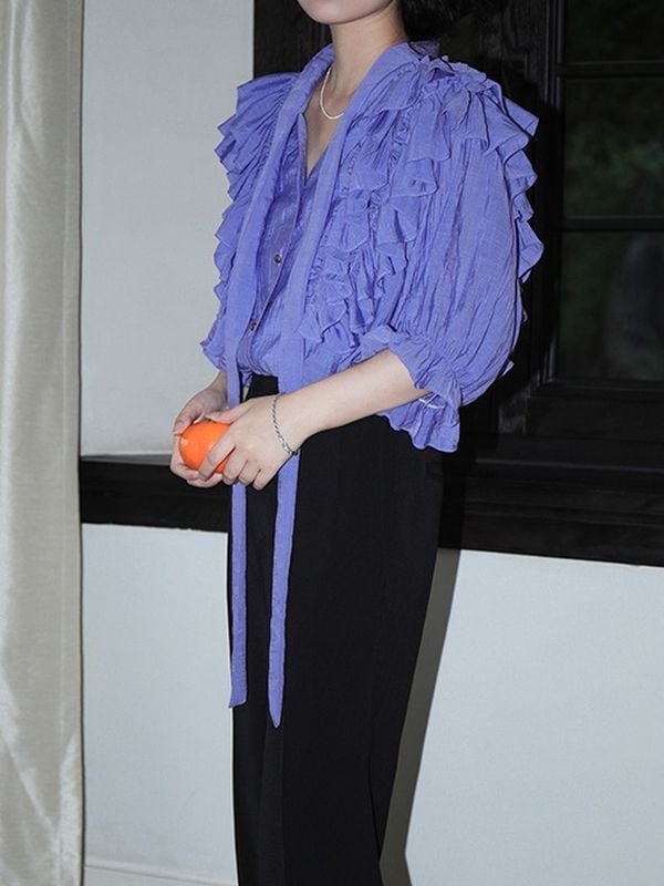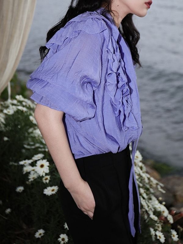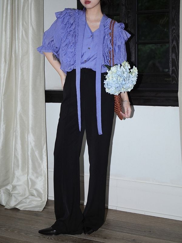 Bowtie Frill Purple Blouse ◇2type (長袖・半袖) TH1062