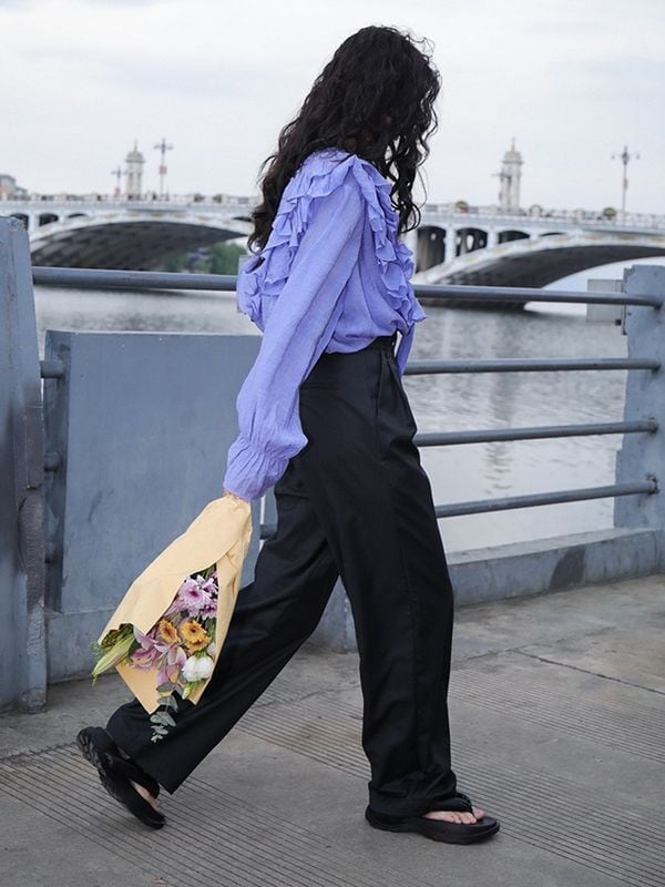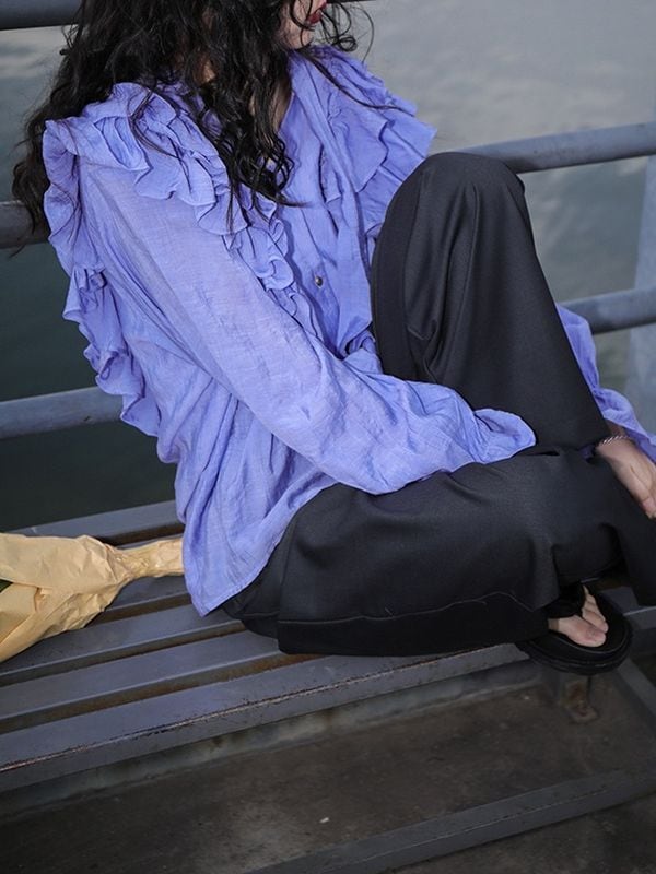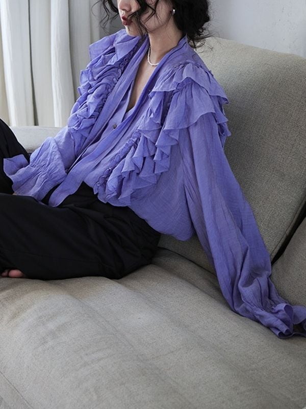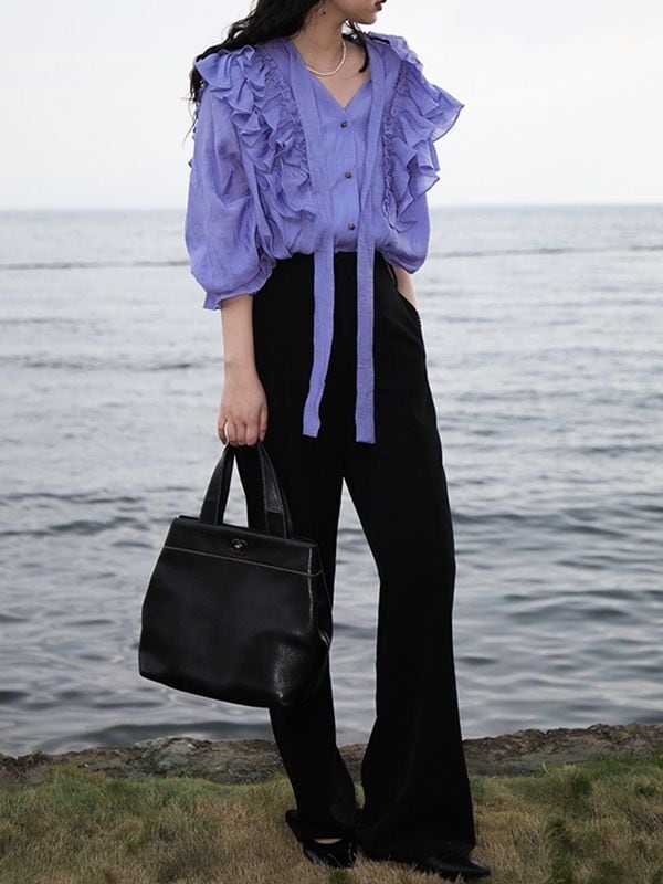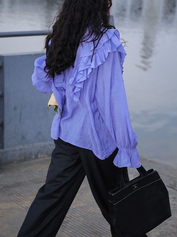 たっぷりフリルショルダーが目を惹くおしゃれ度の高いブラウス