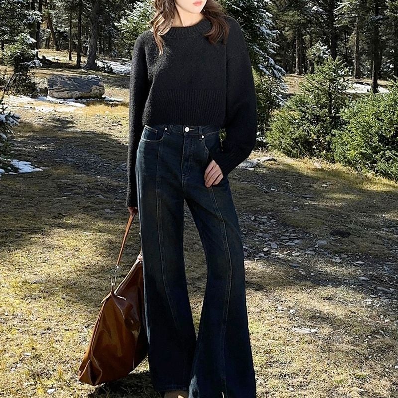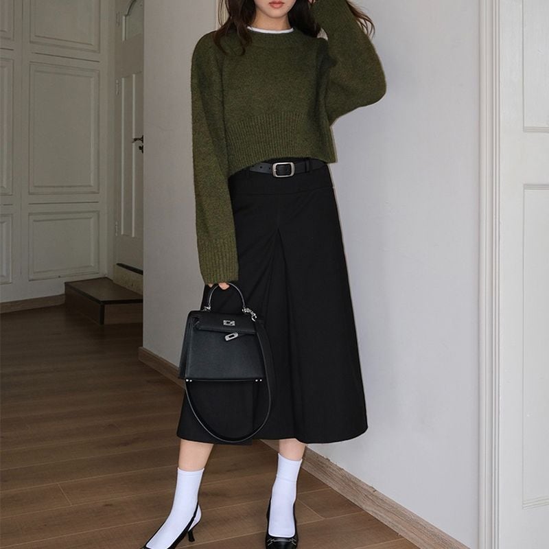 お腹見えが気になる方は、ロンTやシャツとのレイヤードスタイルがおすすめです。