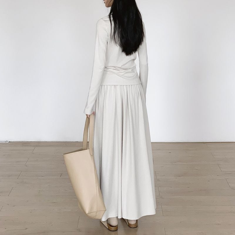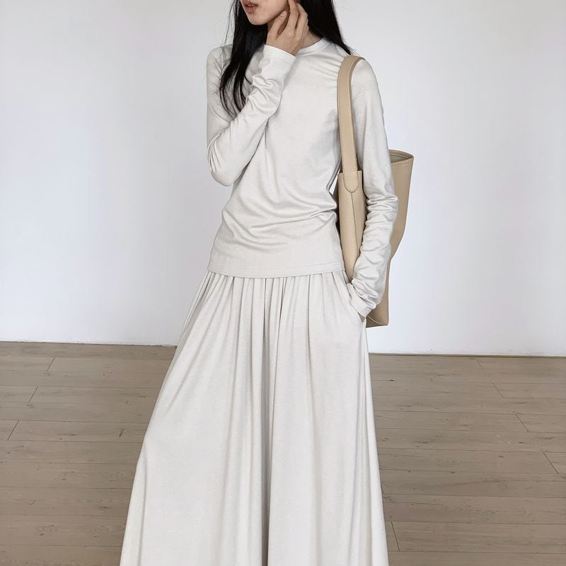 [Set-up] Crew neck T-shirt x flared long skirt TH2668