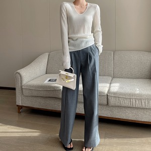Pleat design u-neck knit TH2738