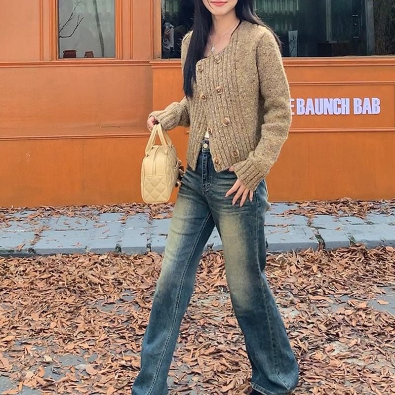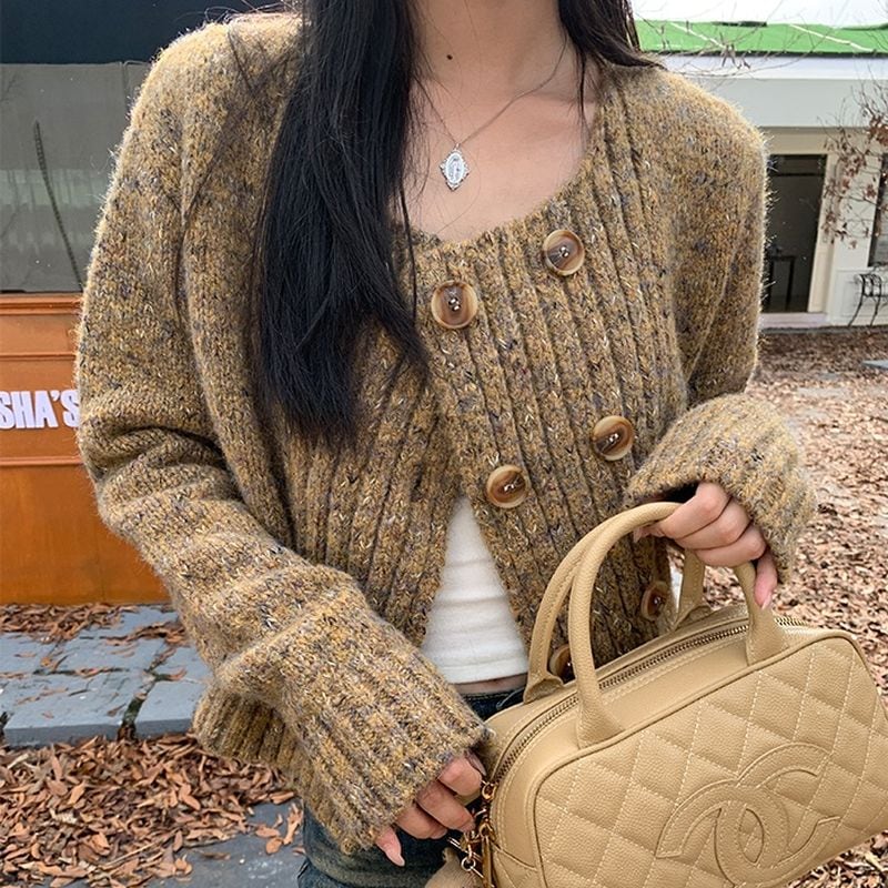 Double button mix color cardigan TH2857