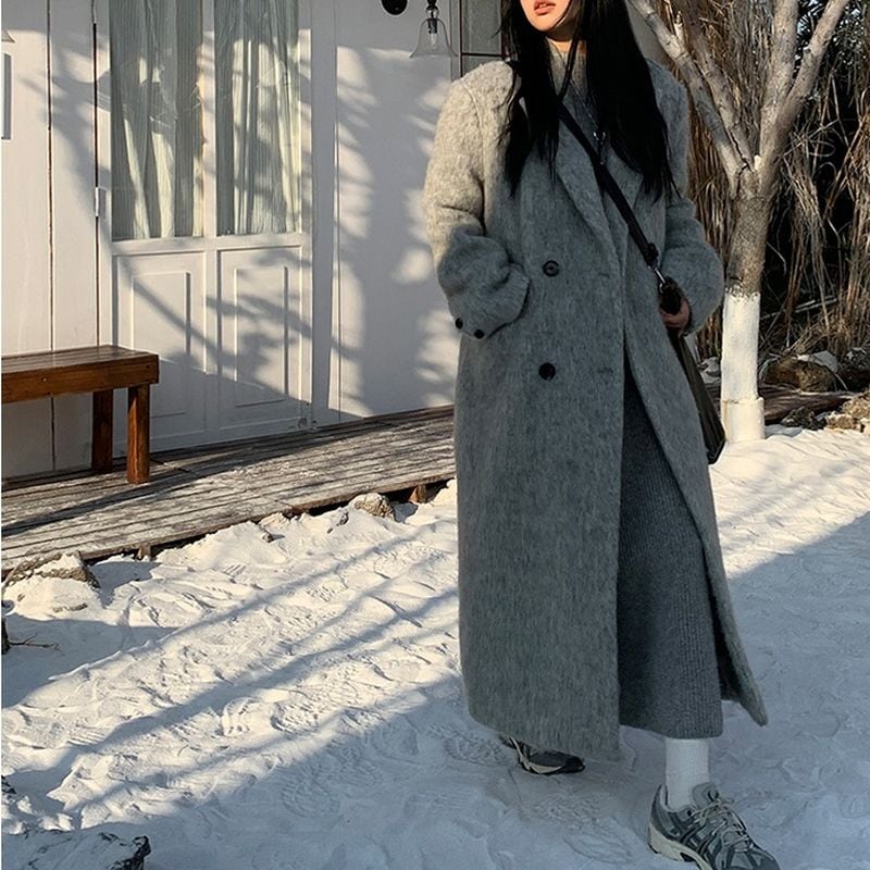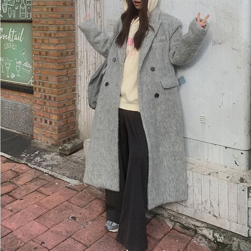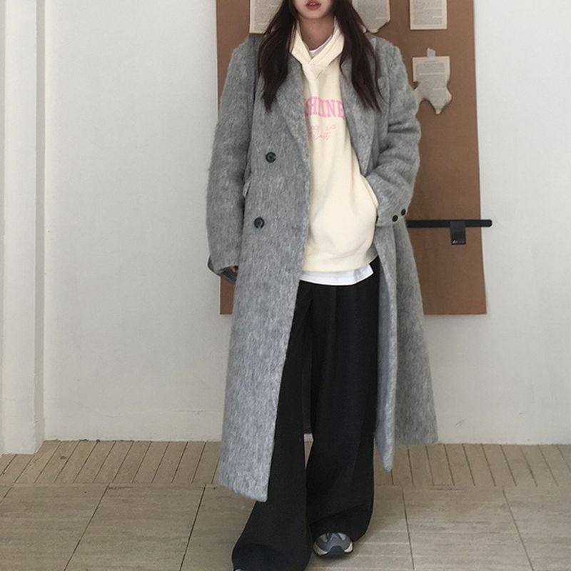 ブラックボタンとのコントラストも可愛くロング丈で防寒対策にも◎