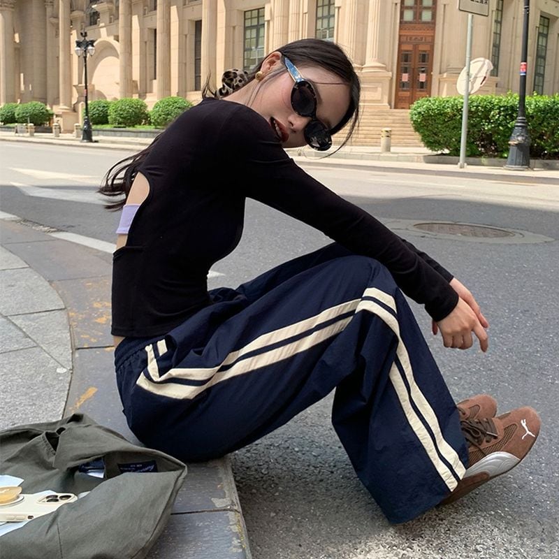 スポーティなサイドラインがポイントのワイドパンツ